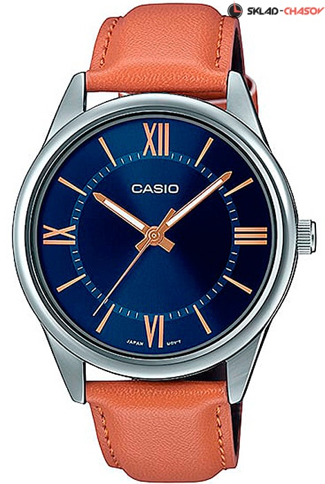 Мужские кварцевые наручные часы Casio MTP-V005L-2B5. Калибр механизма — 5361. Стрелки покрыты люминесцентным напылением (светятся в темноте). Кожаный ремешок. Водонепроницаемость WR (3 атм).