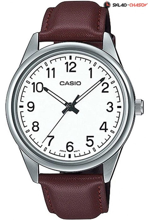 Мужские кварцевые наручные часы Casio MTP-V005L-7B4. Калибр механизма — 5361. Стрелки покрыты люминесцентным напылением (светятся в темноте). Кожаный ремешок. Водонепроницаемость WR (3 атм).