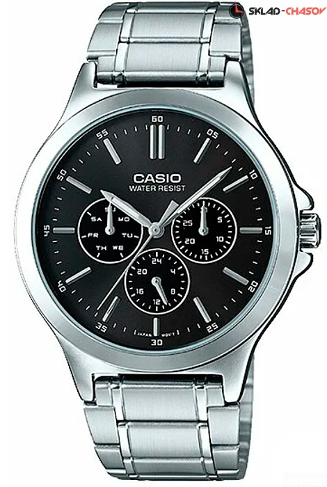 Мужские кварцевые наручные часы Casio MTP-V300D-1A. Калибр механизма — 5420. На данной модели отображается день недели, текущая дата и время суток в 24-х часовом формате. Стрелки покрыты люминесцентным напылением (светятся в темноте). Стальной браслет. Водонепроницаемость WR (3 атм).