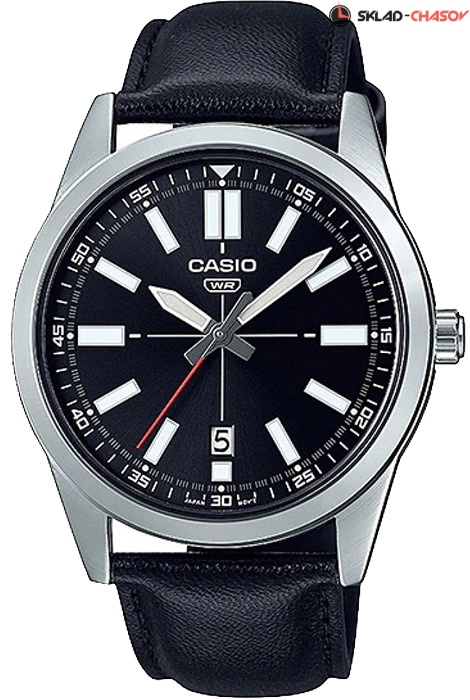 Мужские кварцевые наручные часы Casio MTP-VD02L-1E. Калибр механизма — 5128. На данной модели отображается текущая дата. Стрелки и метки покрыты люминесцентным напылением (светятся в темноте). Кожаный ремешок. Водонепроницаемость WR (3 атм).