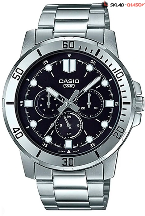 Мужские кварцевые наручные часы Casio MTP-VD300D-1E. Калибр механизма — 5420. На данной модели отображается день недели, текущая дата и время суток в 24-х часовом формате. Стальной браслет. Водонепроницаемость WR (3 атм).