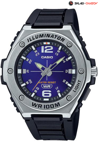 Мужские кварцевые наручные часы Casio MWA-100H-2A. Калибр механизма — 5577. Диодная подсветка циферблата. Водонепроницаемость WR100 (10 атм).