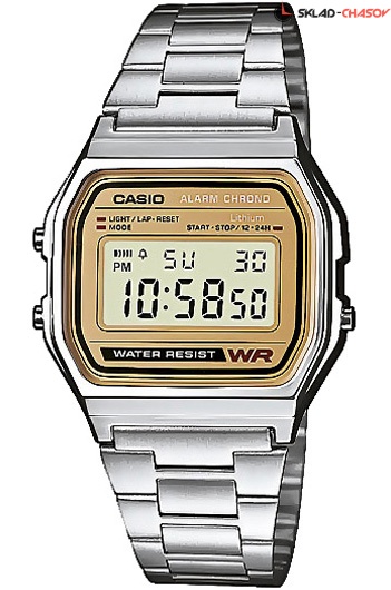 Электронные кварцевые мужские наручные часы Casio Vintage A-158WEA-9E с цифровой индикацией времени. Калибр механизма — 593. Функциональность данной модели: формат времени 12/24, автоматический календарь с установкой 28 дней на февраль, будильник, сигнал начала часа, секундомер с точностью 1/100 секунды и измерением до 59 минут 59,99 cек., диодная подсветка циферблата.
