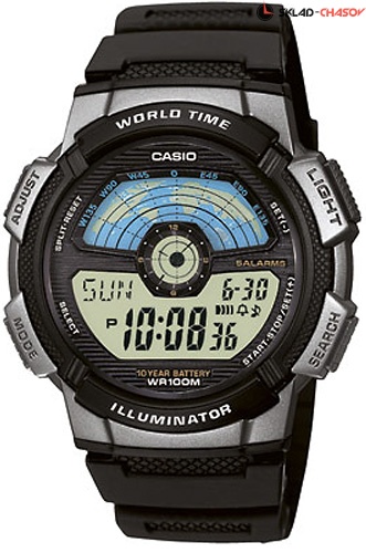 Электронные кварцевые мужские наручные часы Casio AE-1100W-1A с цифровой индикацией времени. Калибр механизма — 3264. Функциональность данной модели: формат времени 12/24, мировое время 48 городов (31 часовой пояс), вечный календарь до 2099 года, 5 независимых будильников, сигнал начала часа, секундомер с точностью 1/100 секунды и измерением до 23 часов 59 минут 59,99 cек., таймер обратного отсчета (диапазон времени 24 часа), функция выключения звука кнопок (Mute), диодная подсветка циферблата. Батарейка на 10 лет работы. Водонепроницаемость WR100 (10 атм).