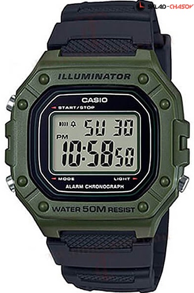 Электронные кварцевые мужские наручные часы Casio W-218H-3A с цифровой индикацией времени. Калибр механизма — 3224. Функциональность данной модели: формат времени 12/24, вечный календарь до 2099 года, будильник, сигнал начала часа, секундомер с точностью 1/100 секунды и измерением до 59 минут 59,99 cек., диодная подсветка циферблата.