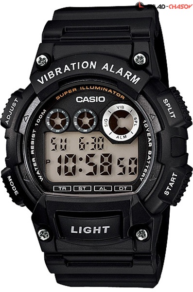 Электронные кварцевые мужские наручные часы Casio W-735H-1A с вибробудильником. Калибр механизма — 3416. Функциональность данной модели: формат времени 12/24, вечный календарь до 2099 года, будильник с функцией вибро, сигнал начала часа, секундомер с точностью 1/100 секунды и измерением до 23 часов 59 минут 59,99 cек.,таймер обратного отсчета (диапазон времени 24 часа), функция двойного времени, диодная подсветка циферблата. Батарейка на 10 лет работы.