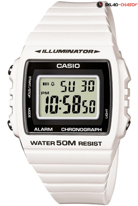 Электронные кварцевые наручные часы Casio W-215H-7A с цифровой индикацией времени. Калибр механизма — 3224. Функциональность данной модели: формат времени 12/24, вечный календарь до 2099 года, будильник, сигнал начала часа, секундомер с точностью 1/100 секунды и измерением до 59 минут 59,99 cек., диодная подсветка циферблата. Водонепроницаемость WR50 (5 атм).