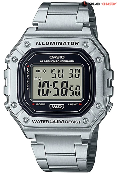 Электронные кварцевые мужские наручные часы Casio W-218HD-1A с цифровой индикацией времени. Калибр механизма — 3224. Функциональность данной модели: формат времени 12/24, вечный календарь до 2099 года, будильник, сигнал начала часа, секундомер с точностью 1/100 секунды и измерением до 59 минут 59,99 cек., диодная подсветка циферблата. Стальной браслет. Водонепроницаемость WR50 (5 атм).