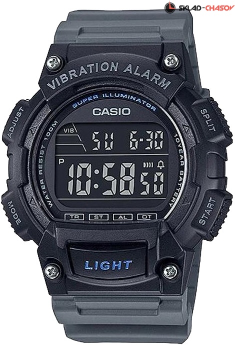 Электронные кварцевые мужские наручные часы Casio W-736H-8B с вибробудильником. Калибр механизма — 3446. Функциональность данной модели: формат времени 12/24, вечный календарь до 2099 года, будильник с функцией вибро, сигнал начала часа, секундомер с точностью 1/100 секунды и измерением до 23 часов 59 минут 59,99 cек., таймер обратного отсчета (диапазон времени 24 часа), функция двойного времени, диодная подсветка циферблата с функцией послесвечения. Инверсный дисплей. Батарейка на 10 лет работы. Водонепроницаемость WR100 (10 атм).