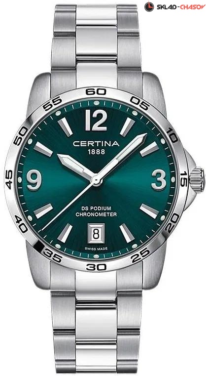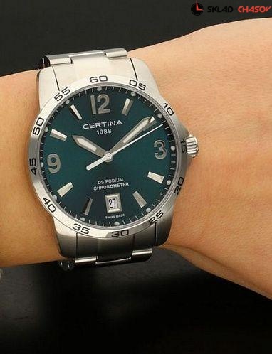 Мужские наручные часы Certina DS Podium C034.451.11.097.00. Точный кварцевый механизм с аналоговой индикацией. Корпус изготовлен из высококачественной нержавеющей стали 316L с высокими антикоррозийными свойствами. На стрелки и отметки нанесен светонакопительный состав, благодаря этому считывать информацию с циферблата возможно и в темноте. На циферблате отображается текущее число месяца. Браслет из нержавеющей стали. Сапфировое стекло. Искусственно изготовленное стекло с высокой прочностью и устойчивостью к царапинам. Часы являются водонепроницаемыми до 10 Бар. Цвет корпуса: Серебристый. Цвет циферблата: Зеленый. Гарантия: 2 года.D 40мм, толщина 9,42мм, ширина браслета 20мм