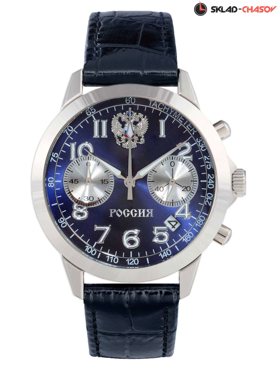 Механизм: измеряет временные интервалы с помощью хронографной секундной стрелки расположенной в центре и 60-ти минутного накопителя у отметки "9" часов. Секундная стрелка часов - у отметки "3" часа. Дата на 4,5 часа.