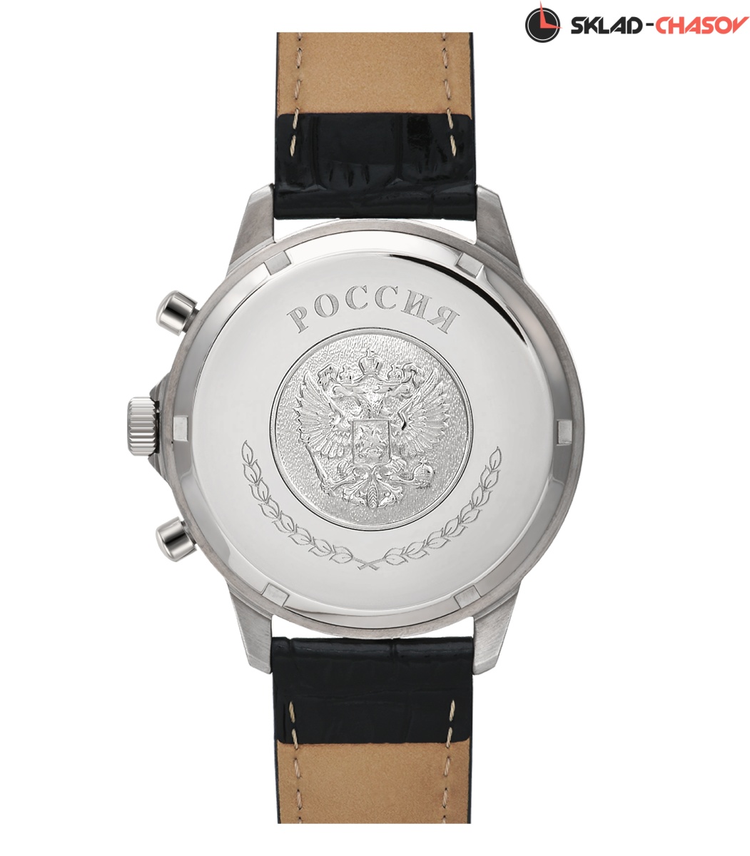 Механизм: измеряет временные интервалы с помощью хронографной секундной стрелки расположенной в центре и 60-ти минутного накопителя у отметки "9" часов. Секундная стрелка часов - у отметки "3" часа. Дата на 4,5 часа.