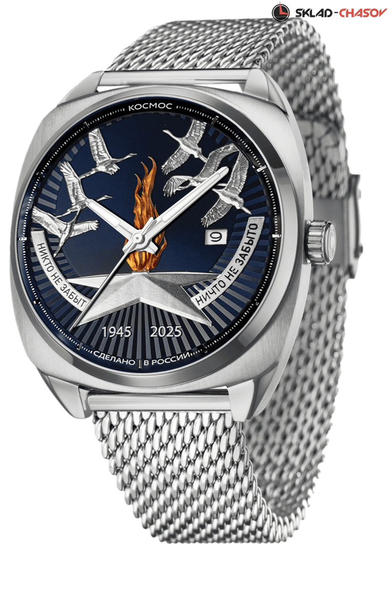В честь 80-летия Великой Победы бренд «Космос» выпускает уникальную серию часов «80 лет Победы», посвященную героям, отстоявшим мир и свободу в годы Великой Отечественной войны. Каждая деталь коллекции символизирует благодарность поколений и служит напоминанием о цене, заплаченной за мирное небо над головой. Вечный огонь, журавли, имена городов-героев — это мост между прошлым и настоящим. Мы хотим, чтобы владельцы этих часов чувствовали связь с теми, кто подарил нам жизнь.