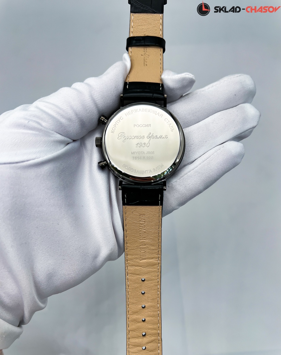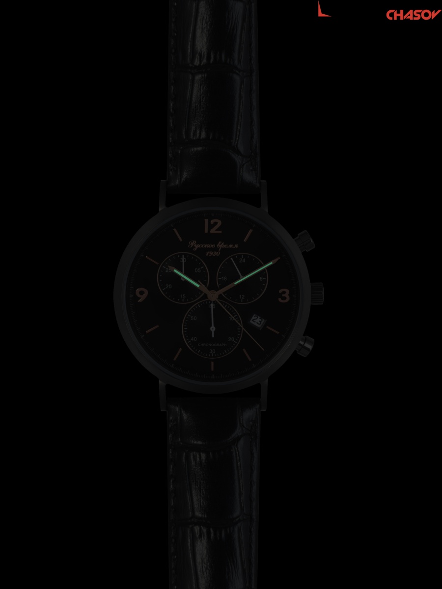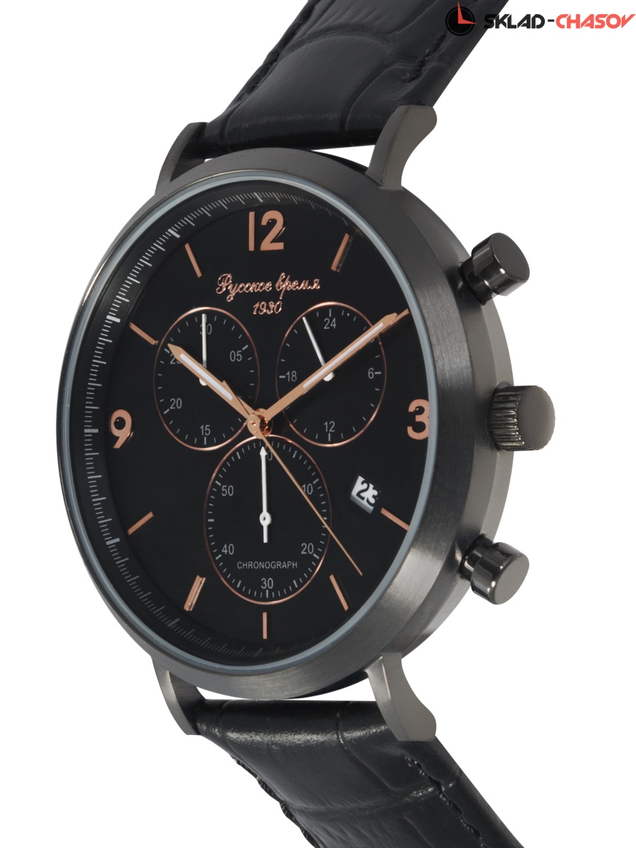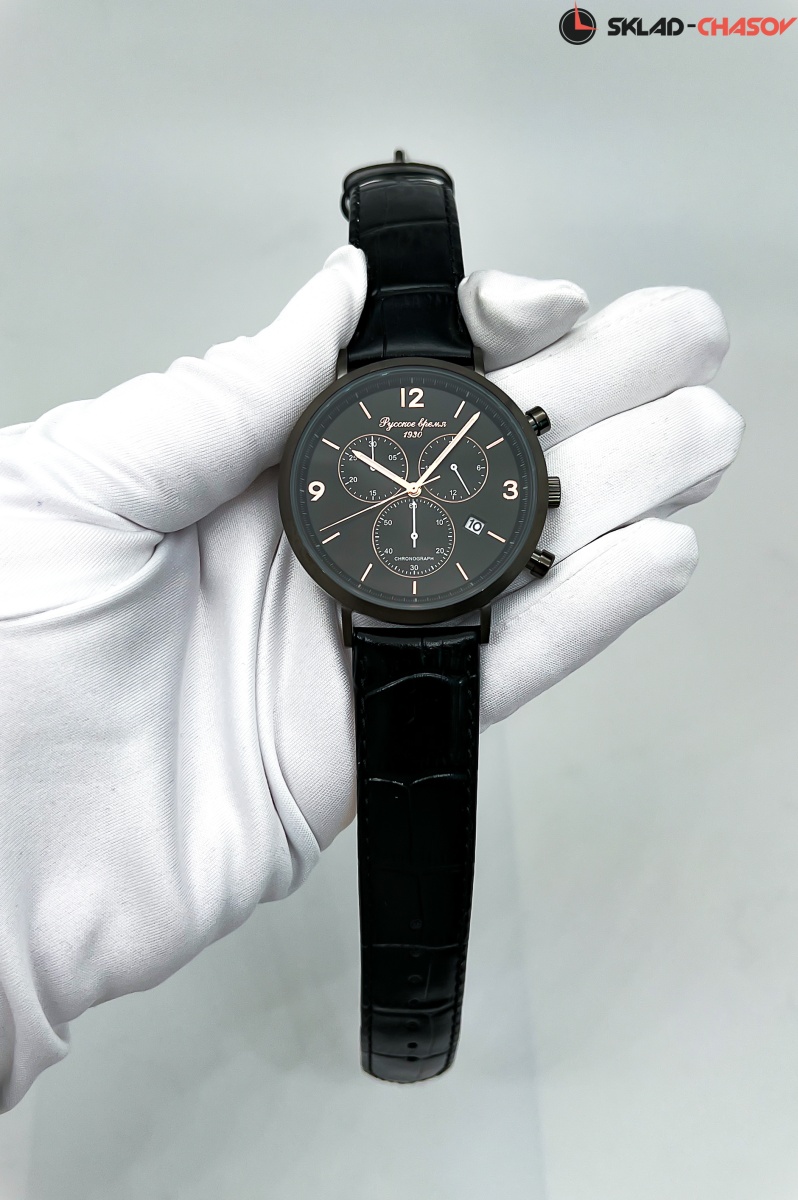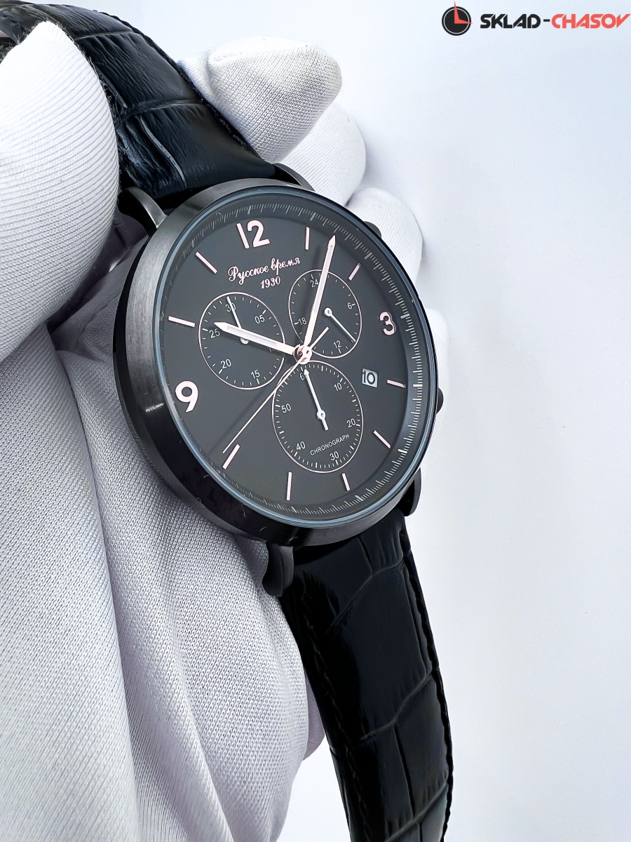Магнетической притягательностью отличаются полностью черные наручные часы Русское время. Они выглядят стильно, роскошно и очень необычно. Строгий черный циферблат дополнительно оснащен окном даты и высококачественным хронографом. Последний просто необходим тем, кто увлекается спортом. Корпус – нержавеющая сталь, часовой кварцевый механизм – от японской компании Дополнительное достоинство – прочное минеральное стекло. Водозащита 3 АТМ.