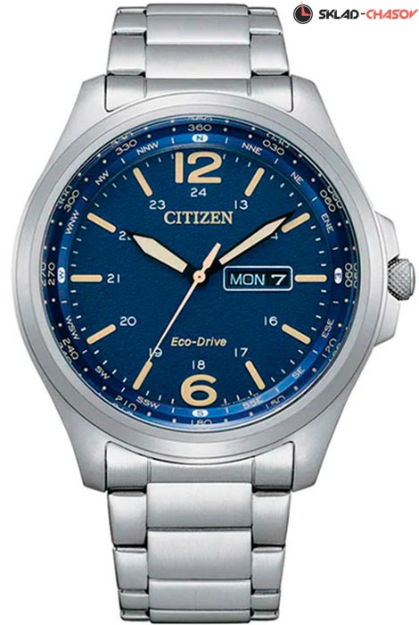 Мужские кварцевые наручные часы на солнечной батарее Citizen AW0110-82L коллекции Eco-Drive. Калибр механизма — J800. Аккумулятор данной модели заряжается от любого источника света. Срок работы аккумулятора с полным зарядом — до 240 дней. Примерный срок службы аккумулятора — 10 лет. Присутствует функция информирования о недостаточном заряде и функция предотвращения перезарядки. На данной модели отображается день недели и текущая дата. На циферблате имеется шкала солнечного компаса (Азимут). Стрелки и метки покрыты люминесцентным напылением (светятся в темноте). Стальной браслет. Завинчивающаяся задняя крышка. Водонепроницаемость WR100 (10 атм).