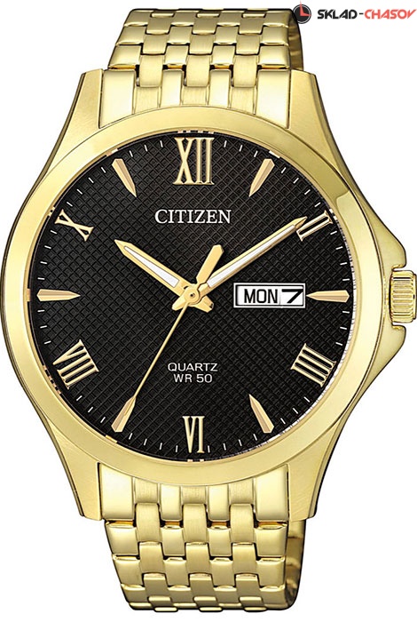 Мужские кварцевые наручные часы Citizen BF2022-55H коллекции Basic. Калибр механизма — 1502. На данной модели отображается день недели и текущая дата. Стрелки покрыты люминесцентным напылением (светятся в темноте). Стальной браслет. На корпус и браслет нанесено стойкое PVD покрытие. Водонепроницаемость WR50 (5 атм).