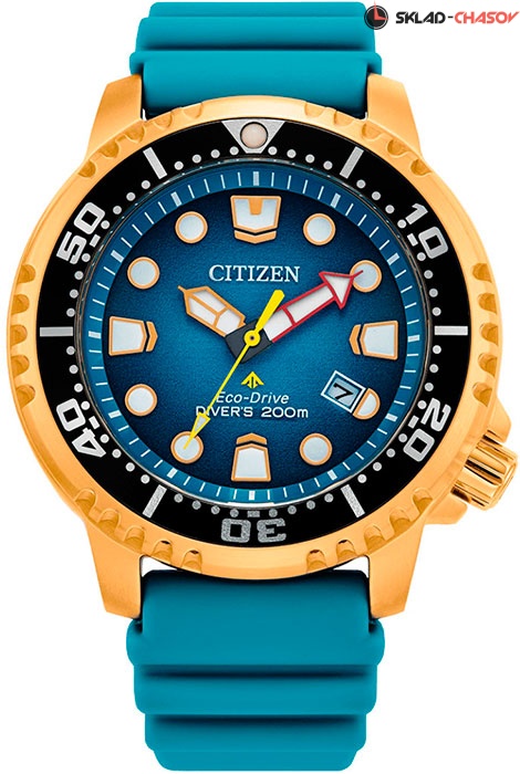 Мужские кварцевые наручные часы на солнечной батарее Citizen BN0162-02X коллекции Eco-Drive Promaster. Калибр механизма — E168. Аккумулятор данной модели заряжается от любого источника света. Срок работы аккумулятора с полным зарядом — около 6-ти месяцев. Примерный срок службы аккумулятора — 10 лет. Присутствует функция информирования о недостаточном заряде и функция защиты от перезаряда. На данной модели отображается дата. Вращающийся в одном направлении безель. Данная модель обладает высокой степенью водонепроницаемости WR200 (20 атм), подходит для глубокого погружения под воду и соответствует стандарту дайверских часов ISO 6425. Завинчивающаяся задняя крышка и заводная головка. Стрелки и метки покрыты люминесцентным напылением (светятся в темноте). На корпус нанесено стойкое PVD покрытие. Полиуретановый ремешок.
