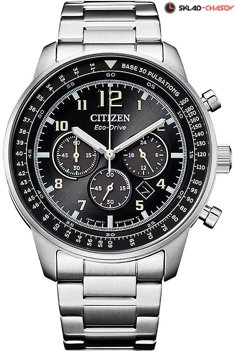 Мужские кварцевые часы с хронографом (секундомером) Citizen CA4500-83E коллекции Eco-Drive Chrono. Калибр механизма — B620. Аккумулятор данной модели заряжается от любого источника света. Срок работы аккумулятора с полным зарядом — 270 дней. Примерный срок службы аккумулятора — 10 лет. Присутствует функция информирования о недостаточном заряде. На данной модели отображается дата и время суток (24-х часовая шкала). Секундомер может отсчитывать до 60 минут с точностью 1/5 секунды. На циферблате присутствует шкала пульсометрического хронографа. Стрелки и метки покрыты люминесцентным напылением (светятся в темноте). Стальной браслет. Завинчивающаяся задняя крышка. Водонепроницаемость WR100 (10 атм).