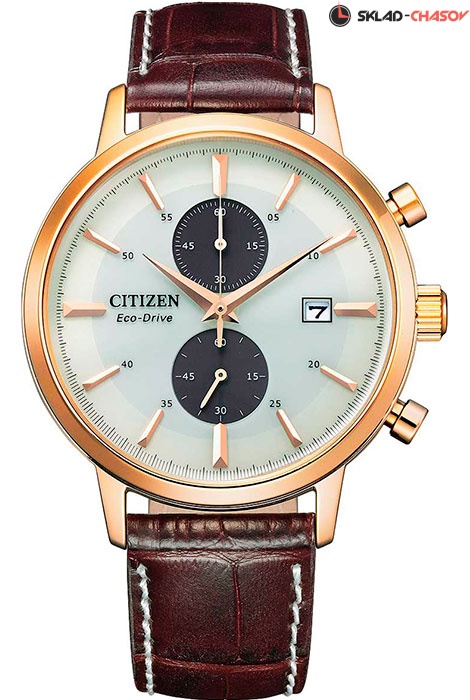 Мужские кварцевые наручные часы с хронографом (секундомером) на солнечной батарее Citizen CA7063-12A коллекции Eco-Drive Chrono. Калибр механизма — B642. Аккумулятор данной модели заряжается от любого источника света. Срок работы аккумулятора с полным зарядом — до 210 дней. Примерный срок службы аккумулятора — 10 лет. Присутствует функция информирования о недостаточном заряде и функция предотвращения перезаряда. На данной модели отображается дата. Секундомер способный отсчитывать до 59 минут с точностью 1/5c. Кожаный ремешок. На корпус нанесено стойкое PVD покрытие. Водонепроницаемость WR50 (5 атм).