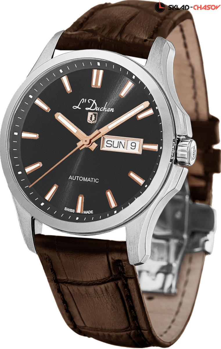 Циферблат часов защищен сапфировым стеклом с антибликовым покрытием. Повышенная водостойкость составляет 10 атмосфер, задняя крышка крепится на четырех винтах. Ремешок часов сделан из натуральной кожи универсального коричневого цвета с прошивкой. Застежка-клипса декорирована логотипом бренда.