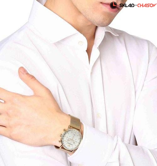 Стильный мужской хронограф в стальном корпусе будет прекрасным партнером в вопросах времени. Aviator. Мужские часы-хронограф с секундомером и тахиметром. Циферблат выполнен по технологии Sunray (солнечные лучи). Окошко даты. Рифленая заводная головка. Браслет миланского плетения.