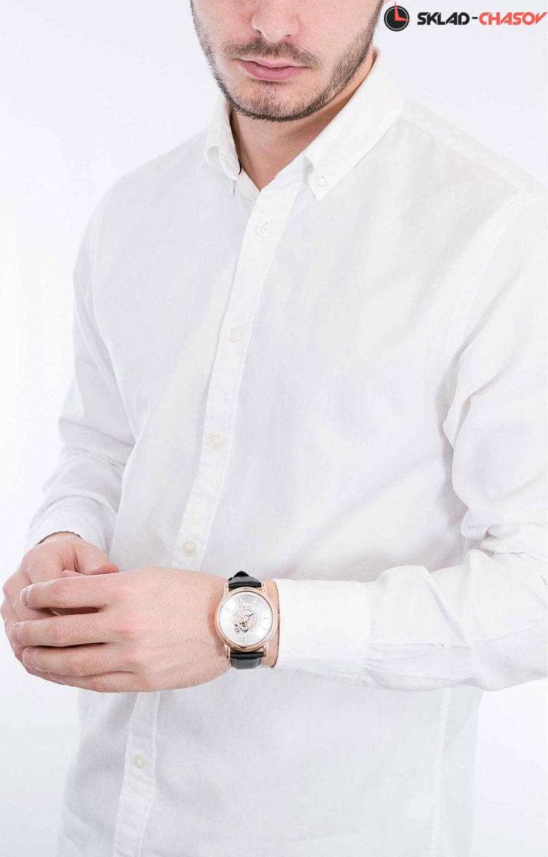 На запястье эти функциональные часы смотрятся мужественно и стильно, они надолго приковывают внимание окружающих. Luigi. Сквозь прозрачное окошко на циферблате можно наблюдать за работой механизма часов. В механизме 21 камень. 12-ти и 24-х часовой формат времени. На вращающихся дисках указатели часов (время в 24-х часовом формате) и секунд. Рифленая заводная головка. Круглый корпус. Прозрачная задняя крышка. Часовой механизм декорирован «женевскими волнами» (Cotes de Geneve). Ремешок из натуральной кожи.