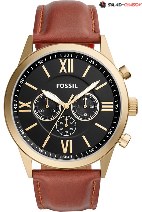 Мужские кварцевые наручные часы с хронографом (секундомером) Fossil BQ2261 коллекции Flynn. Секундомер может отсчитывать до 30 минут. На данной модели отображается время суток (24-х часовая шкала). Кожаный ремешок. На корпус нанесено стойкое PVD покрытие. Водонепроницаемость WR50 (5 атм).