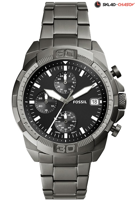 Мужские кварцевые наручные часы с хронографом (секундомером) Fossil FS5852 коллекции Bronson Chronograph. Секундомер может отсчитывать до 30 минут. На данной модели отображается дата и время суток (24-х часовая шкала). Стальной браслет. На корпус и браслет нанесено стойкое PVD покрытие. Водонепроницаемость WR50 (5 атм).