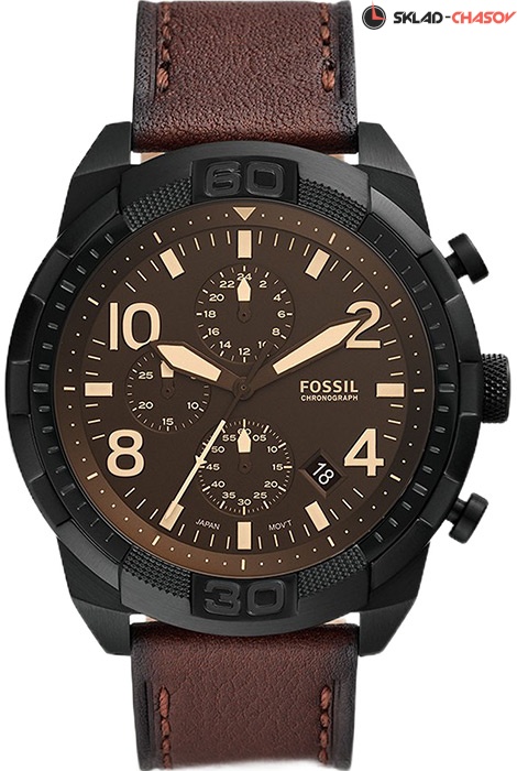 Мужские кварцевые наручные часы с хронографом (секундомером) Fossil FS5875 коллекции Bronson Chronograph. Секундомер может отсчитывать до 30 минут. На данной модели отображается дата и время суток (24-х часовая шкала). Кожаный ремешок. На корпус нанесено стойкое PVD покрытие. Водонепроницаемость WR50 (5 атм).