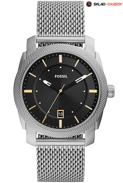 Мужские кварцевые наручные часы Fossil FS5883 коллекции Machine. На данной модели отображается дата. Стальной браслет миланского плетения. Водонепроницаемость WR50 (5 атм).