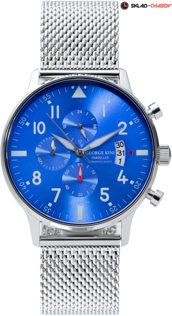 Кварцевый механизм JS15 с датой, хронограф, корпус и браслет - сталь 316L, Диаметр корпуса D=43 мм, синий циферблат, сапфировое стекло, WR=5 ATM.