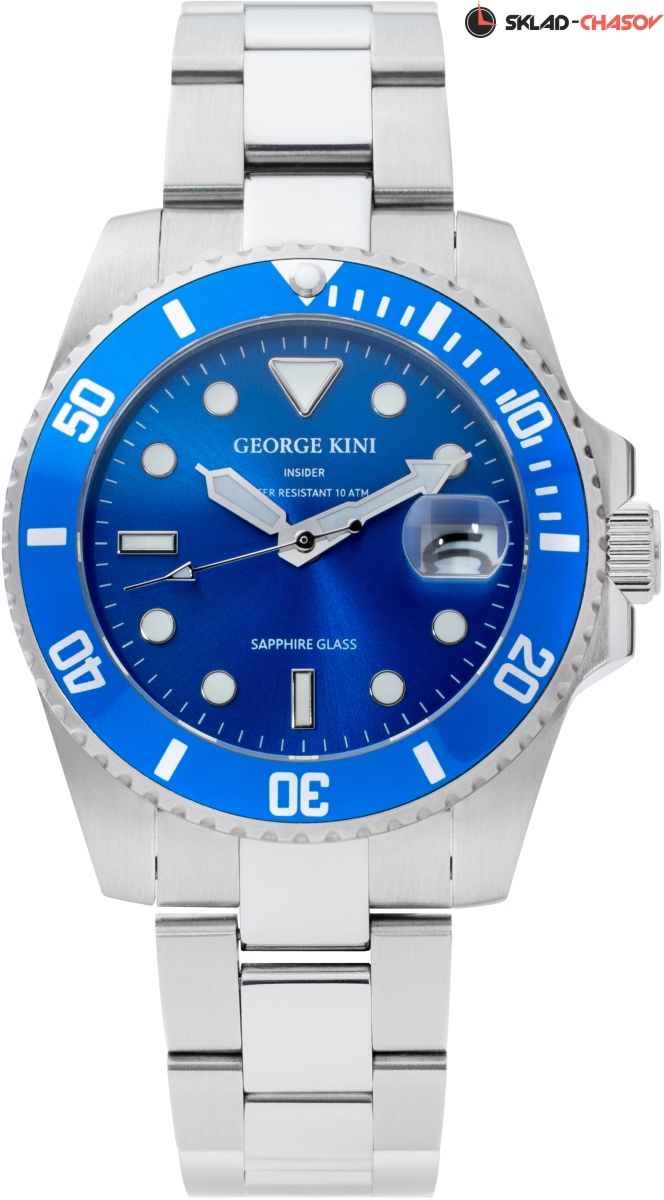 Кварцевый механизм Miyota 2315 с датой, корпус и браслет - сталь 316L, Диаметр корпуса D=42 мм, синий циферблат, сапфировое стекло, WR=10 ATM.