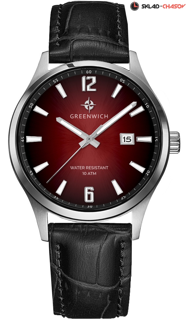 Логотип марки – изображение «розы ветров» – символизирует удачу и новые открытия. Он расположен на циферблате, заводной головке и внутренней части ремешка. Задняя крышка часов украшена изображениями «розы ветров» и корабля, который является символом марки Greenwich.