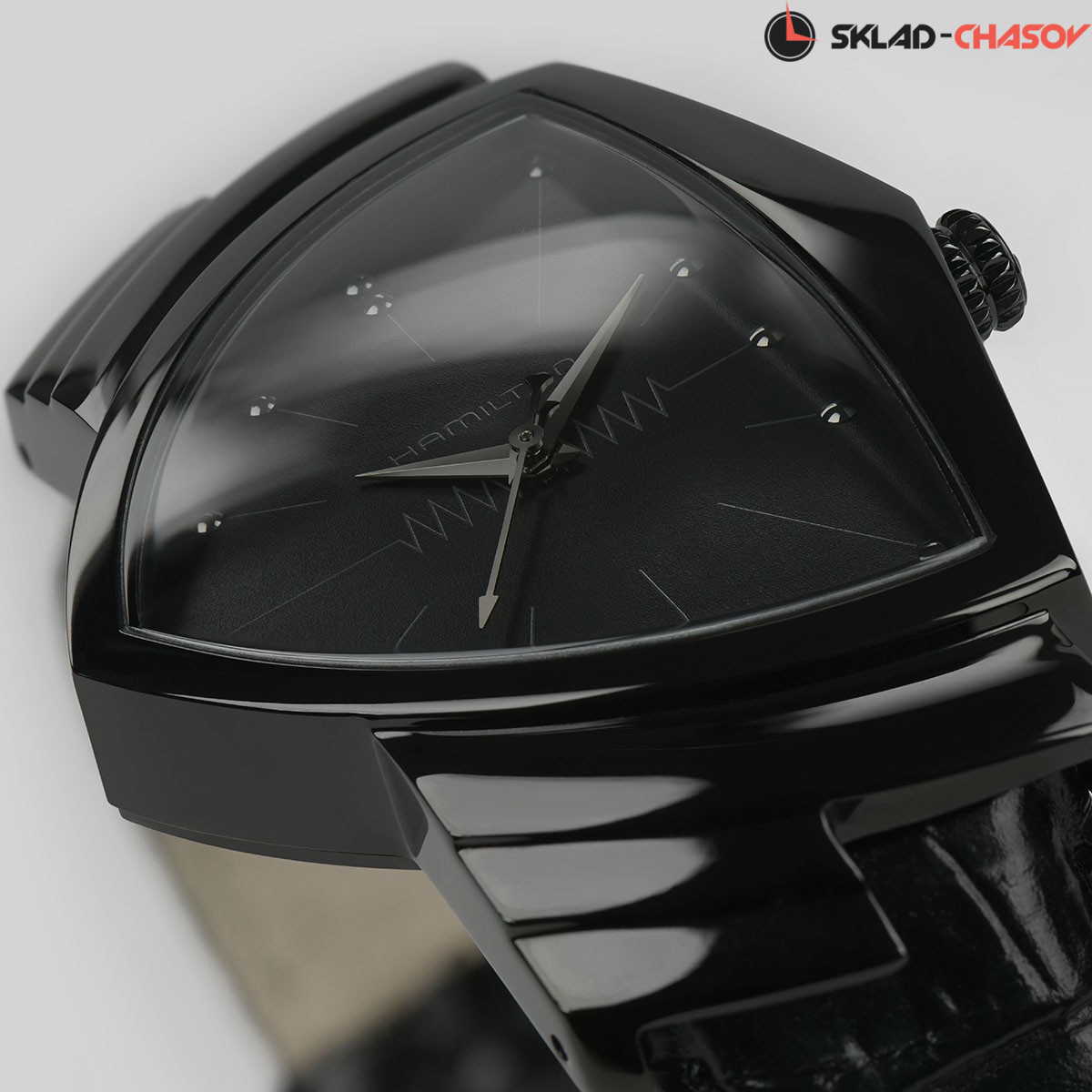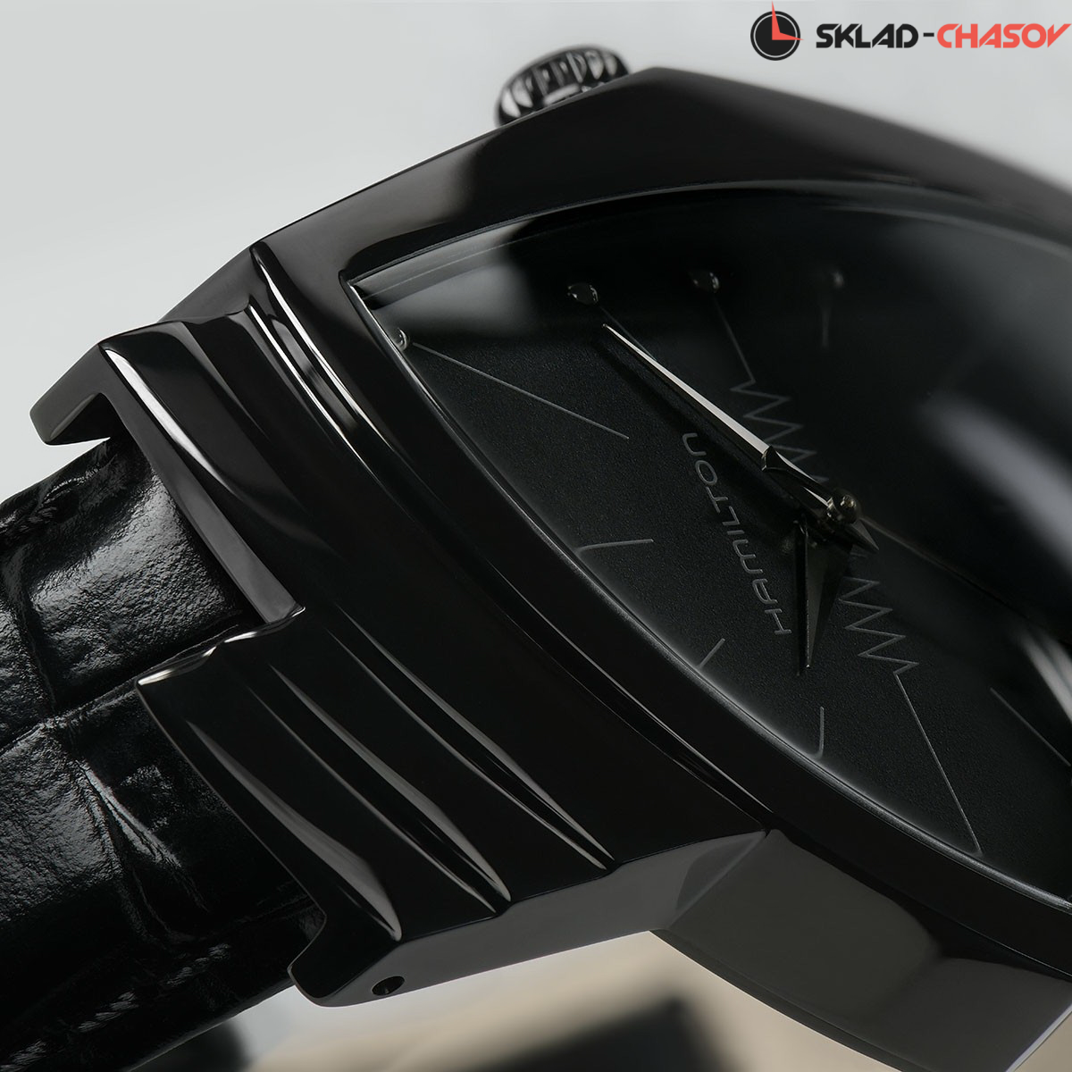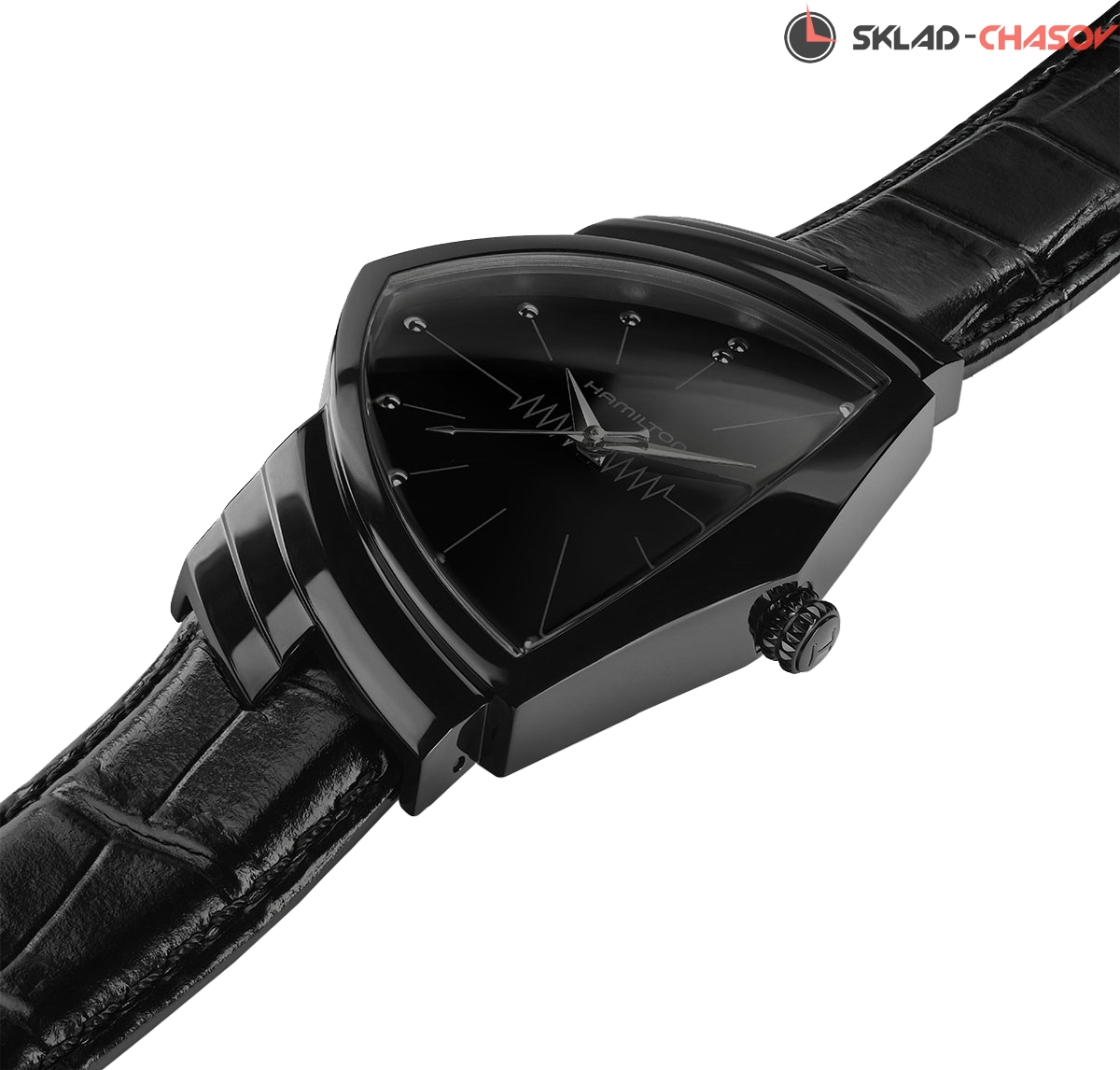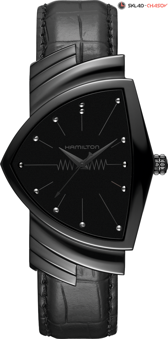 Легендарная модель Ventura предлагается в новой монохромной версии черного цвета. Сочетание асимметричного корпуса и PVD-покрытия, делает часы максимально эфеектными.