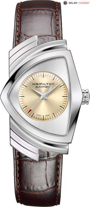 Продолжение традиций Ventura. Корпус этих часов напоминает асимметричный корпус легендарной модели Ventura 1957 года и является одним из самых узнаваемых дизайнов Hamilton, которому часто, но безуспешно подражали. Ventura остается важной частью гордой истории Hamilton. Прозрачная задняя крышка.