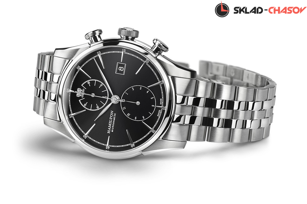 Хронограф с счетчиками секунд, часов, индикация даты на "3" часа.