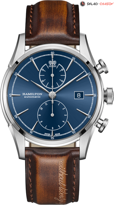 Хронограф с счетчиками секунд, часов, индикация даты на "3" часа.