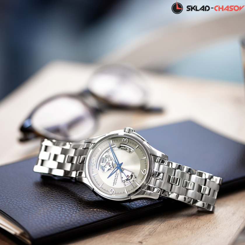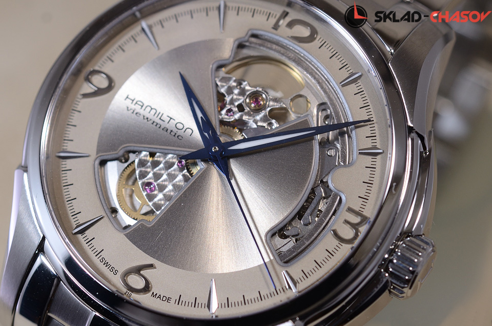 Мужские часы, циферблат полу скелетон. Индикация часов, минут и секунд центральными стрелками.