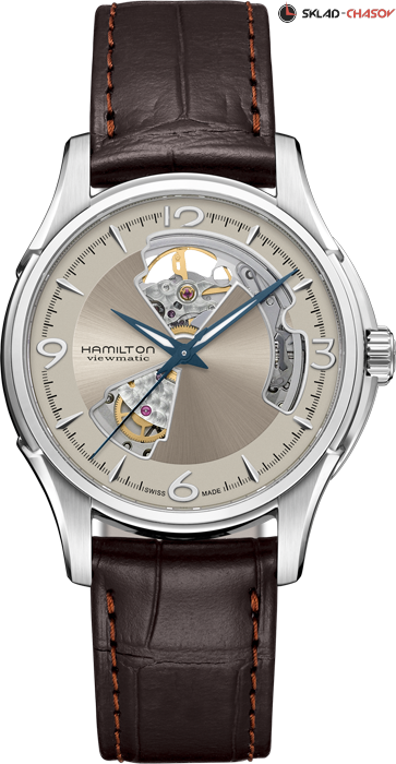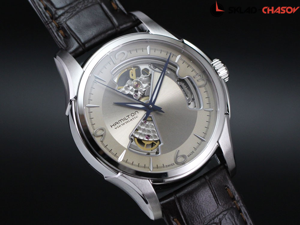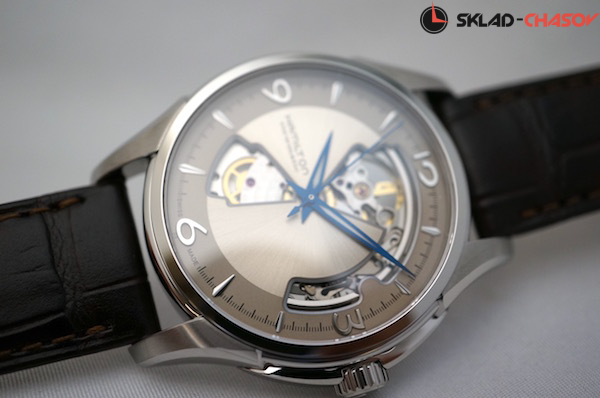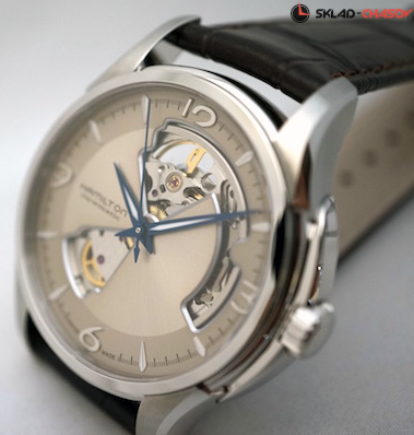 Мужские часы, циферблат полу скелетон. Индикация часов, минут и секунд центральными стрелками.
