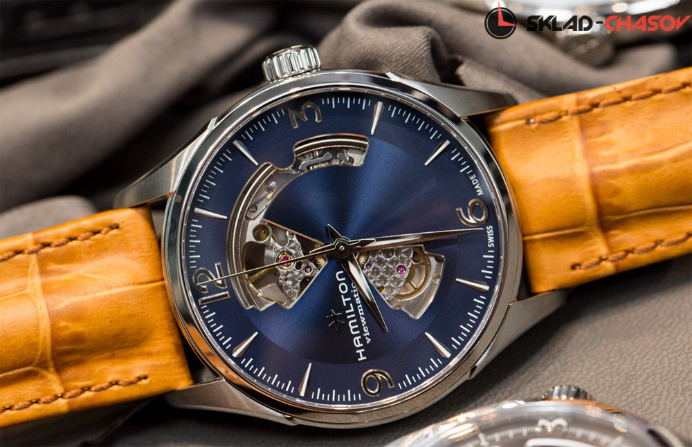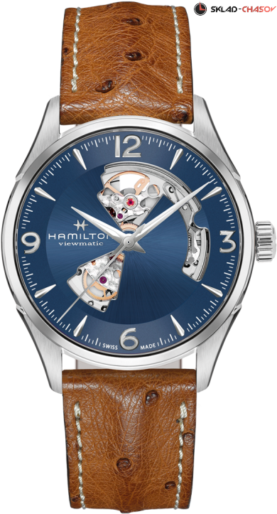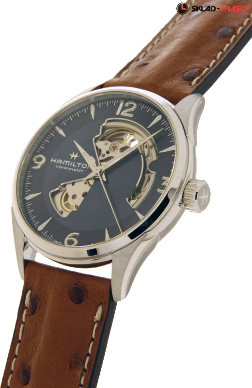 Мужские часы, циферблат полу скелетон. Индикация часов, минут и секунд центральными стрелками.