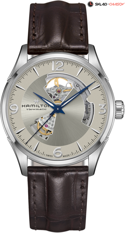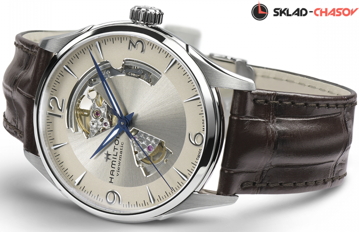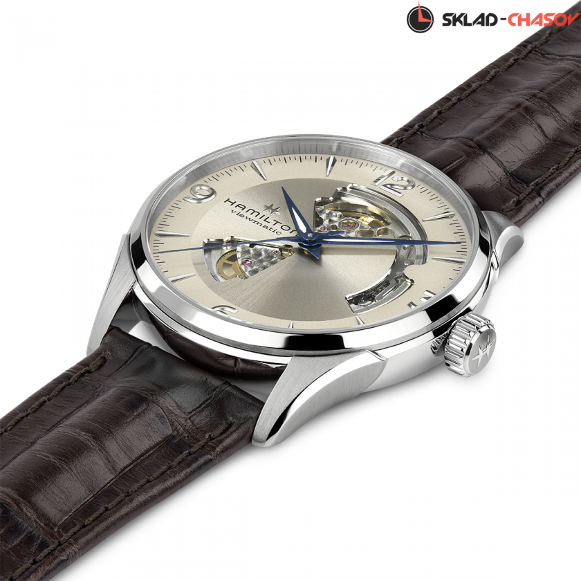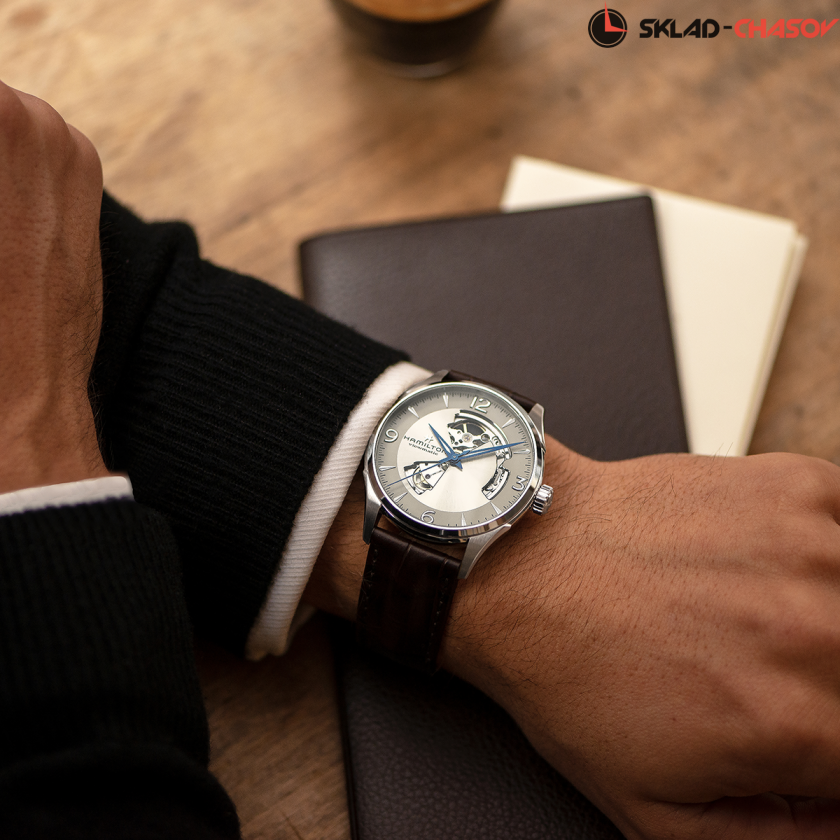 Мужские часы, циферблат полу скелетон. Индикация часов, минут и секунд центральными стрелками.