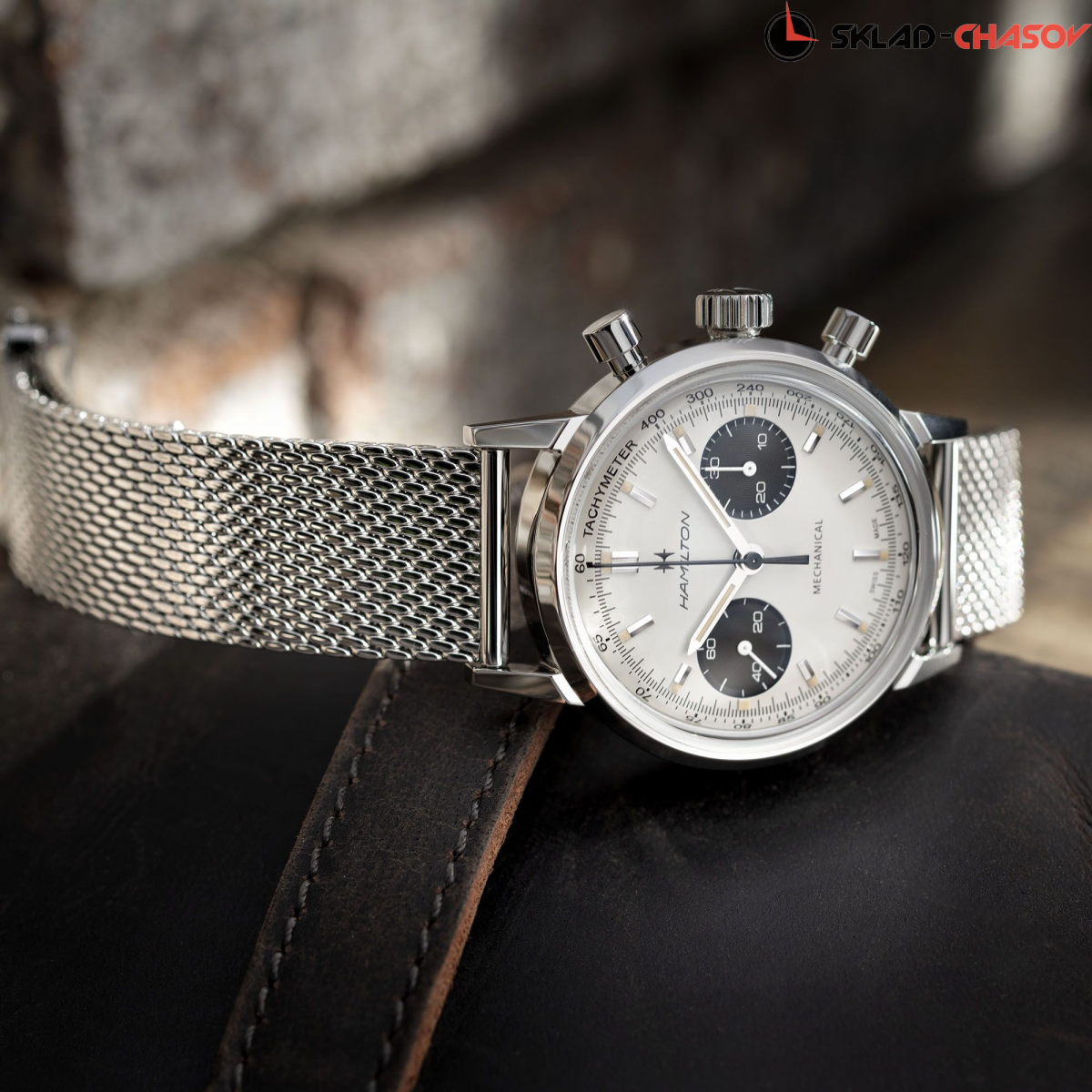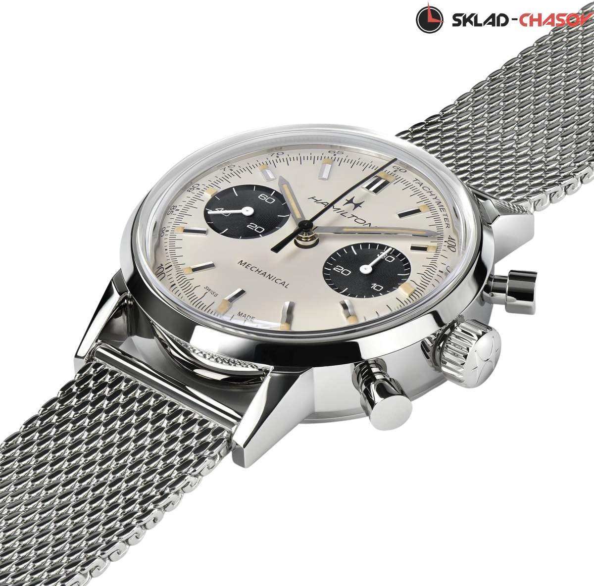 Мужской механический двухсекционный хронограф, оснащенный механизмом с ручным заводом H-51, воплощает собой часы с душой. Выпуклое сапфировое стекло с двусторонним антибликовым покрытием защищает фирменный циферблат окраски «панда», который придает механической версии винтажного изделия особую аутентичность.