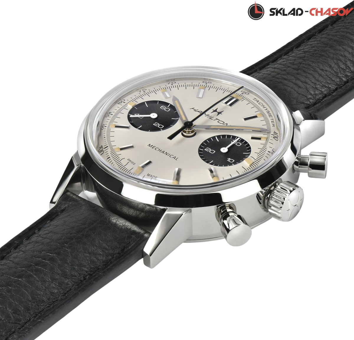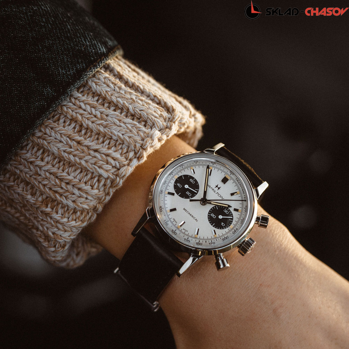 Мужской механический двухсекционный хронограф, оснащенный механизмом с ручным заводом H-51, воплощает собой часы с душой. Выпуклое сапфировое стекло с двусторонним антибликовым покрытием защищает фирменный циферблат окраски «панда», который придает механической версии винтажного изделия особую аутентичность.
