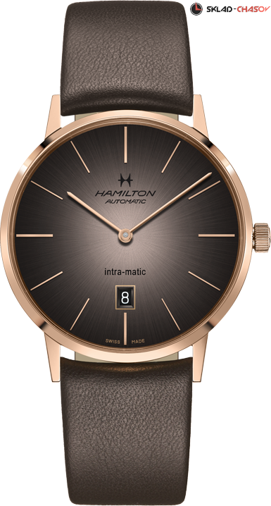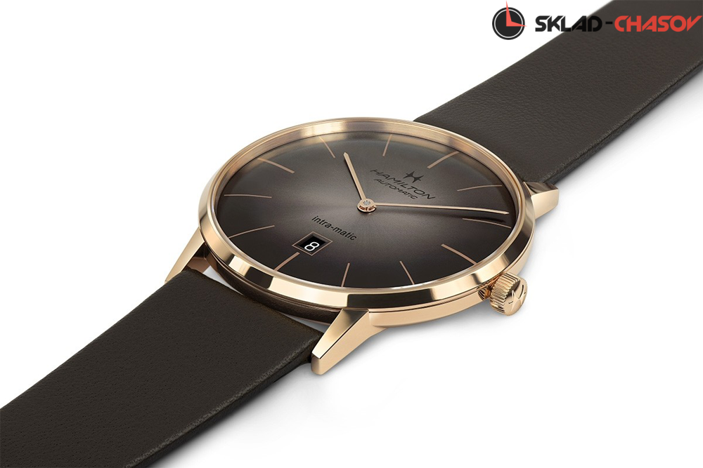 Мужская модель в винтажном стиле. Индикация часов и минут центральными стрелками. Апертура даты в положении 6 часов. Циферблат с узором "солнечные лучи".