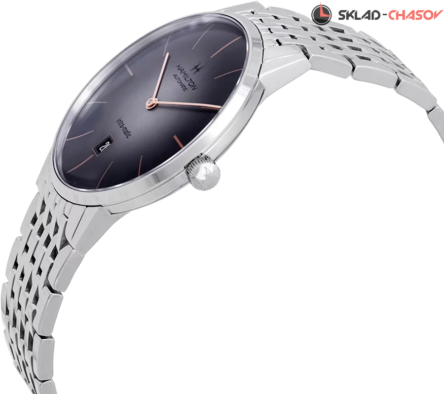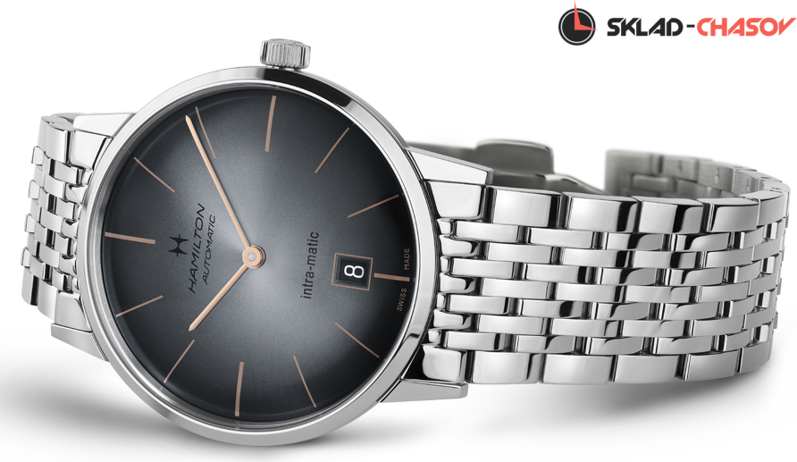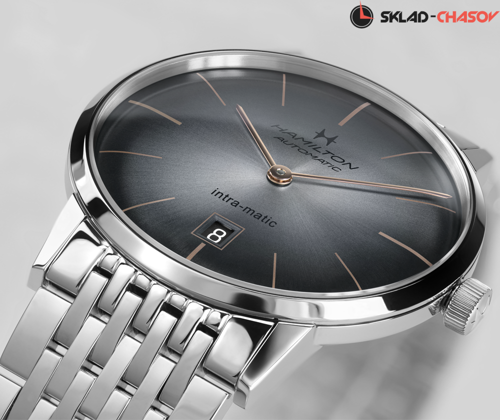 Мужская модель в винтажном стиле. Индикация часов и минут центральными стрелками. Апертура даты в положении 6 часов. Циферблат с узором "солнечные лучи".