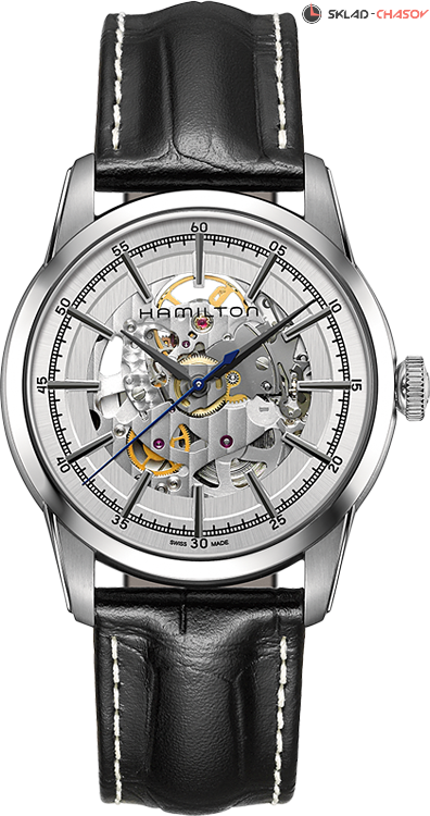 Классическая мужская механическая модель, скелетонированный циферблат модели позволяет наблюдать за работой механизма, прозрачная задняя крышка