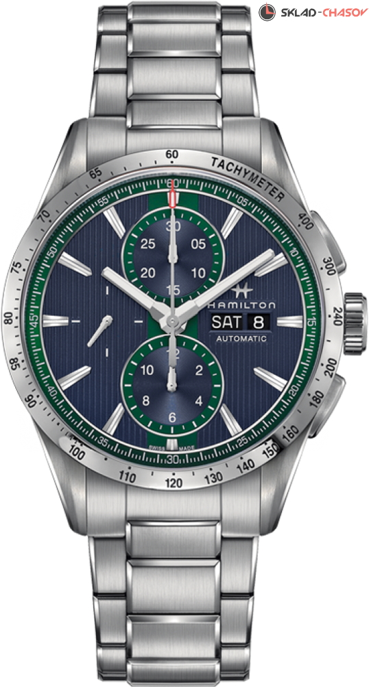 Стильный мужской хронограф с уникальным строением корпуса и нотами спортивного дизайна. Окошко даты и дня недели в положении 3 часа. 30-минутный счетчик расположен на 12 часов, 12-часовой счетчик на 6 часов, малая секунда на 9 часов. тахиметрическая шкала на безеле. Циферблат выполнен с вертикальным узором гильоше, напоминающим городские небоскребы.
