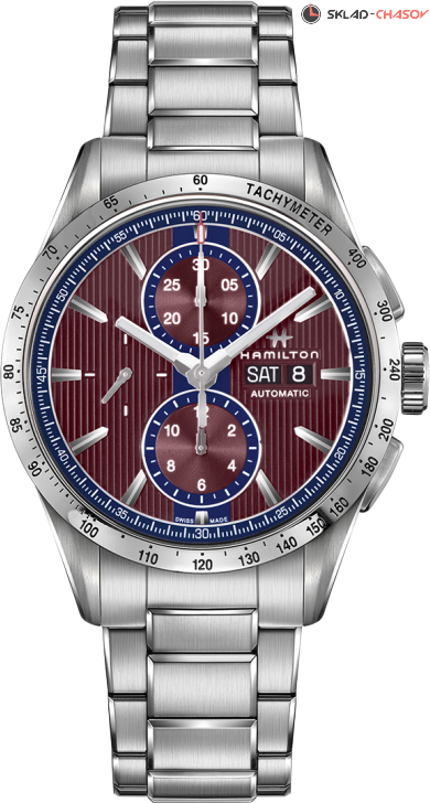 Стильный мужской хронограф с уникальным строением корпуса и нотами спортивного дизайна. Окошко даты и дня недели в положении 3 часа. 30-минутный счетчик расположен на 12 часов, 12-часовой счетчик на 6 часов, малая секунда на 9 часов. тахиметрическая шкала на безеле. Циферблат выполнен с вертикальным узором гильоше, напоминающим городские небоскребы.