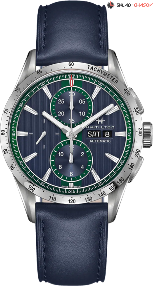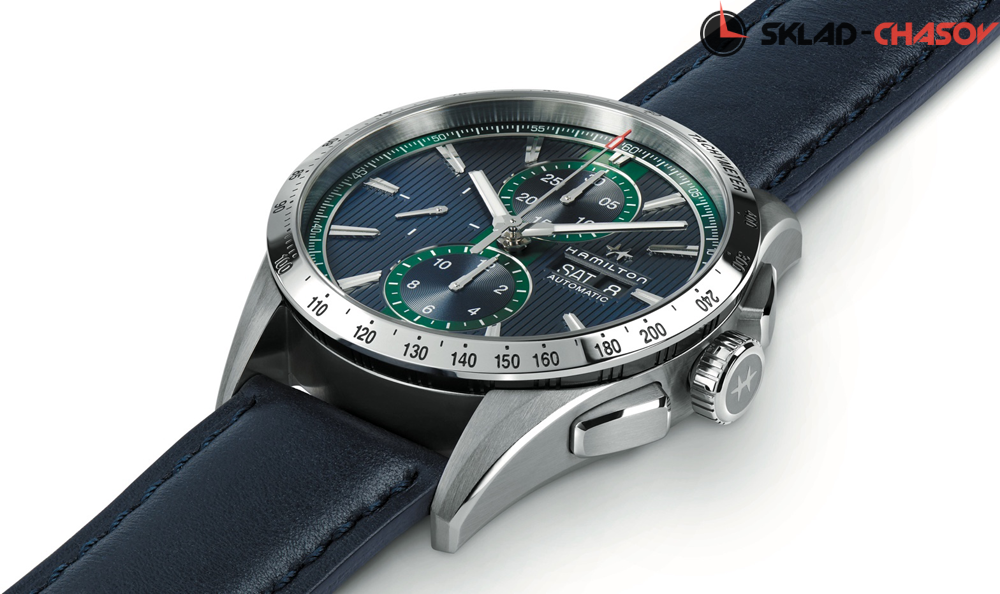 Стильный мужской хронограф с уникальным строением корпуса и нотами спортивного дизайна. Окошко даты и дня недели в положении 3 часа. 30-минутный счетчик расположен на 12 часов, 12-часовой счетчик на 6 часов, малая секунда на 9 часов. тахиметрическая шкала на безеле. Циферблат выполнен с вертикальным узором гильоше, напоминающим городские небоскребы.