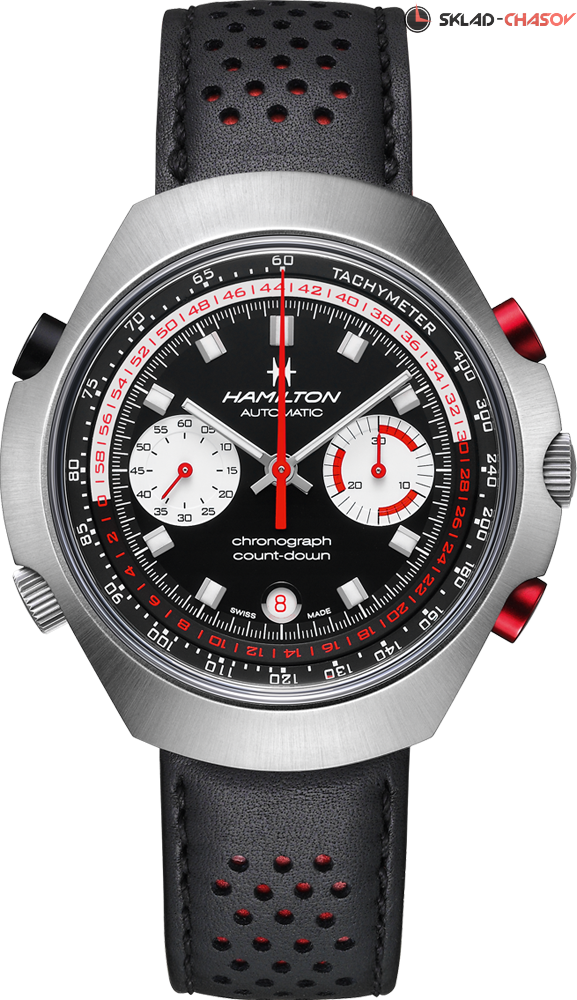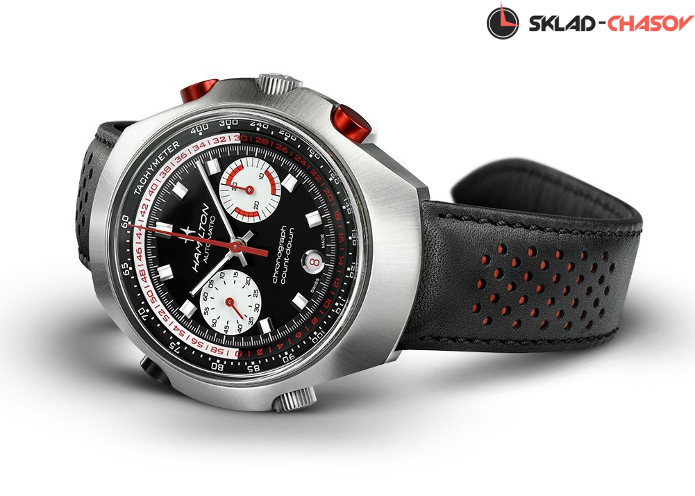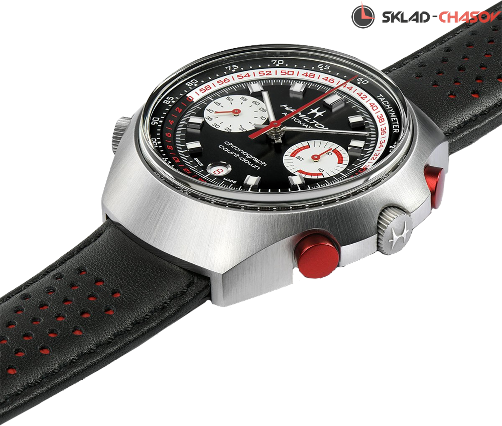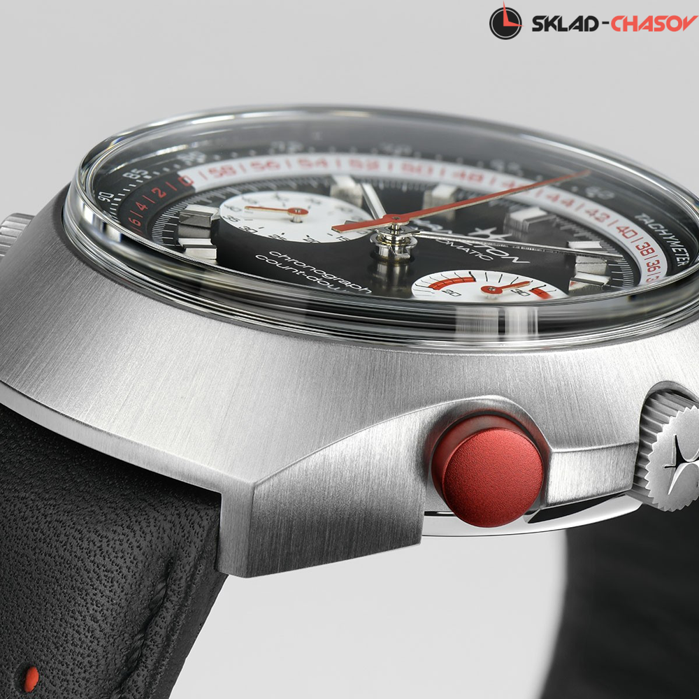 Ограниченная серия - 1972 экземпляра. Модель с обратным отсчетом времени создана на основе дизайна часов Chrono-Matic E. Циферблат выполнен в инверсии окраски в виде "панда". Выразительные красные штрихи дополняют динамичный дизайн корпуса.